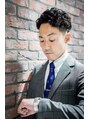 Cカールの強めパーマ。スタイリングはジェルまたはグリースで艶のある質感にして後ろに流すだけの簡単スタイリング!
