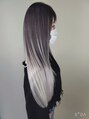 ブリーチ履歴のある髪にイルミナカラーで9レベルのシルバーに染めて160gの明るいシルバーエクステでバレイヤージュにしたスタイルです。ブリーチの抜けが悪い時はトーンを思い切って落とす方が失敗がないでしょう。