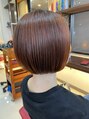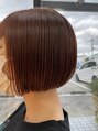 顎ラインのミニボブにカラーはオレンジ系で可愛らしい印象に。