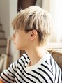 ハイトーンマッシュスタイル☆サイドは耳出しスッキリ刈り上げ、襟足はあつみを残した刈り上げですっきり!ハイトーンのクリーミーなベージュも根元の黒との陰影いい感じにカラーが映えますね!無造作に乾かしただけでも形になるのでオススメです。