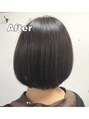 ダメージによって退色してしまった部分を切り、ドライヤーだけでおさまる楽々ボブにカットしました。元々扱いやすい髪質なのでハンドブローだけでまとまります。落ち着いた色味でツヤ感も素敵です。