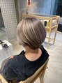 1毛束感をカットで造る。 2頭の形が綺麗に見えるようなカタチ に。3毛先が柔らかく見えるように空間を作りながら。。 4ダメージ部分をカット。赤みを抑えたカラーは質感を柔らかく見せてくれます。ゆるっとした束感でリラックス感が出るように。