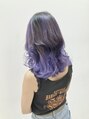 ブリーチでシャドールーツをしていて、ずっと白を目指していましたが、ブルーパープルにしたいというご要望でイメージチェンジしてみました。パープル系は発色も弱いのでカラーミューズという塩基性のカラーでやってみました。