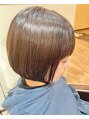 ぱつっと切り揃えたトレンドのミニボブ。顔の角度によって出てきてしまう毛を丁寧にチェックカットしていきます。バングは2~3cm後ろから足して範囲を広げることでお顔を小さく見せる効果が期待できます。