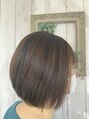 前下がりのラインを作ることによってショートボブでも女性らしさをアップ。耳にかけたり、ハーフアップにしたりアレンジもききます!