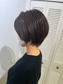 丸くコンパクトにまとまるくびれショートは乾かすだけでまとまるのでスタイリングも簡単です♪赤みを抑えたアッシュグレージュで艶と透明感も◎