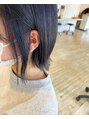 ラベンダー系のカラーを入れました!元々イヤリングカラーをしてたので部分的に濃い紫に♪♪オージュアのトリートメントでしっかりケアしながらカラーしました!カットはきりっぱなしボブにバッサリカット!クセがあるので量は重めに残してます☆