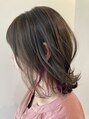 - ポイントブリーチにピンクをより綺麗にみせるために、全体は反対色のアッシュ系でより色味を際立たせる!