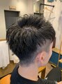 細かくセニングを入れ、スタイリング時に細い束感が出やすい様にすることで、立体感を演出してます。