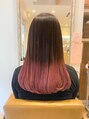 20代 ピンクグラデーションカラー 切りっぱなしロング[草加]