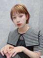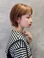 顎くらいの大人ショート、ミニボブ。オレンジベージュカラーで、透明感と柔らかい印象になれます。オイルバームを髪全体に馴染ませるだけのツヤ髪になれる簡単スタイリング。