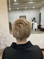 アシンメトリーのショートスタイル♪オシャレで個性的なお客様なので、カットは前下がりのショートボブベースで左サイドとバックをスッキリ刈り上げてあげて♪