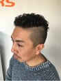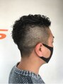 モヒカンパートにルーズなランダムカールを施し大胆に3 ミリでツーブロック化。大人かわいいスタイルへ