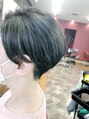 サイド・後ろと2ブロックを入れてスッキリしたかっこいいショートスタイルです。ベースの色は青みのダークな色で、細めのハイライトをたくさん入れて動きが出るようにしました。