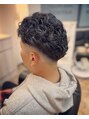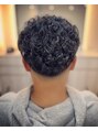 キツめのパーマと短めの刈上でハードな感じに仕上げています。