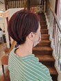 丸み小顔ショート×ワインレッド