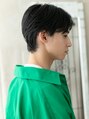 センターパートで長めバングをサイドに自然に流したビジカジスマートショート。サイドは耳上で切りそろえ、バックも短くしてスッキリとさせて清潔感抜群。刈り上げで毛量調節してスッキリと。アップバングやオールバングはビジネスでも◎
