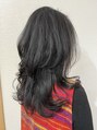 レイヤースタイルといえば、【ウルフ】デスね~。その人の全体のバランスを見ながら、ウエイトポイントを決めてカットしています。仕上げは32ミリのコテで仕上げています。
