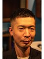 サイドを1mmの長さでフェードさせ、トップをフロントに流しバングにしっかりカットラインを作ったクロップスタイル。フェード部分をスキンにはしないことによりイカつすぎないスマートな仕上がり。ストリートだけでなくおしゃれなビジネスシーンでも◎