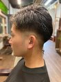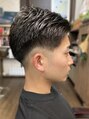 潔いフェードカットにトップは動きが出る長さにボリュームを加えてメリハリのあるスタイルに◎分け目をつけることでスタイリッシュ感UP!