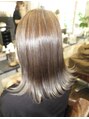 全体的にメッシュを入れてダメージは最小限に抑え毛先にブリーチ、毛先を外ハネにすることでメッシュをひきたたせます。