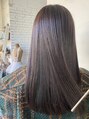 服装が重たくなる季節は髪色も落ち着けたくなりますね!でも赤系はカラーチェンジする時が大変、そんな時はアッシュ系カラーでトーンダウンする事で暗さと透明感の両方を手に入れられます!毛先には厚みが出るようにカットしてあるので暖かみを感じられます!