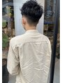 刈り上げは3mmのグラデーション。高さは頭の形に合わせて耳上ラインで設定しました。元々髪に癖があるので重さが出やすい部分はしっかりと毛量調節しています。