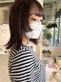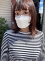 オレンジブラウンカラーにダブルラインカットで個性的で可愛いスタイルに。アイロンで顔まわりは内に全体は外ハネになるように巻いています。オイルだけのスタイリングでツヤのある仕上がりになっています。