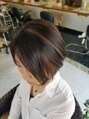 襟足ギリギリの前下がりボブにブリーチでウィービング+インナーカラ―。上品さを出す為にアッシュベージュでONカラー。