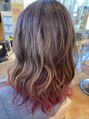 毛先にチェリーピンクを入れたグラデーションカラーです!全体をゆるく巻いて仕上げた可愛らしいスタイルです♪
