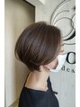 オリーブアッシュ♪赤みを抑えて髪に透け感をプラス。ナチュラル感たっぷりのヘアスタイルに仕上がります。丸みを残したショート。可愛らしさも残しつつ長めの流れる前髪で大人っぽい印象も演出できるショートです。