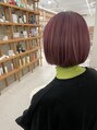 ブリーチしてた髪の毛にワンカラーでカシスピンクに。色味の抜け具合も楽しんでもらえる温かみある柔らかいカラーです♪このパツっとしたボブとも相性が良いですし、ショートヘアにもおすすめです(^-^)