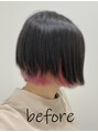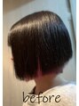 ショートに失敗してしまったと連絡を頂いたので、お直し例です。 襟足あたりに梳き鋏が大量に入っているので、少しウエイトを高くして修正してあります。美容室で量を取ってほしいという時は、あまり梳きすぎない程度に量を取ってもらうのがポイントです!