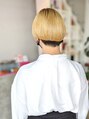 ブリーチ2回、ハイダメージトリートメントでベースを整えてオンカラー。次回のブリーチの際と髪が伸びても馴染みやすい様に、根元はやや暗めに..襟足の刈り上げ部分は地毛のままで2トーンの配色でデザイン性をプラス!!