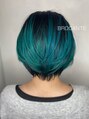 シャドーツール 韓国 ショートボブ ブリーチオンカラー 青髪 緑/ホットペッパービューティー