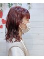 レッドピンクのカラーでトーンダウンしました。ストレートでも外ハネでも波ウェーブでもかわいいレイヤーなしの万能スタイルです。