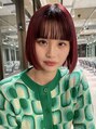 前髪はワイドで全体はパツッと収まるボブスタイル。カラーは、流行りの赤!前髪に、ローライト(黒の束)をまばらに入れています。少し個性を出してみたい方にオススメ!