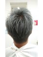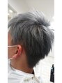 ベースはツーブロックのショートレイヤーでトップは長めに残しました。2回ブリーチでトーンアップした髪にチャコールグレーをかぶせた透明感が魅力的。