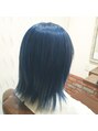 リタッチブリーチで伸びた根本をきれいにムラ無く明るくし、オンカラー発色のいいブルーアッシュで今風により色白で美しく
