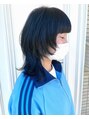 ブルーブラックウルフカットです。ワイドバング【広島派手髪】【広島ハイトーンカラー】【広島バレイヤージュカラー】【広島ウルフカット】【広島白髪ぼかし】【広島ケアブリーチ】【広島美容室】【広島ヘアカラー】【広島インナーカラー】【広島髪質改善】