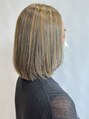 外国人特有の赤味の出ないハイトーンヘアカラー。ハイライトもダメージレスで仕上がりツヤツヤ♪レイヤーの入っていないロブヘアでお手入れ簡単に。