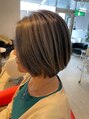 グラングレーカラーと表面ハイライトの組み合わせデザインカラー、艶ボブで上品な仕上がりに。