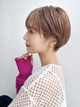 大人ショート×ナチュラルブリーチ透明感カラー。襟足の髪はやや短め、耳にかけれる少し斜めに流せる前髪、女性らしさ残るデザイン。ナチュラルブリーチをしてカラーをすると可愛さが増します!ワックスを揉み込むだけの簡単スタイリングです!