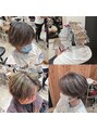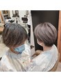 ブリーチで脱白髪染めハイライト。白髪をぼかし、しっかりとブリーチすることで目立ちにくく、透明感のあるグレージュを楽しめます。ハイライト2回~3回必要だったりします。相談ください。張 明星