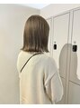 - ブリーチ毛にイルミナカラーで透明感のあるオリーブグレージュにして、ぱつっとボブを合わせました!