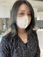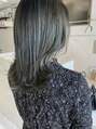 透明感のあるマットカラー。ブリーチで明るくなった髪をグリーンが綺麗に見えるようにベージュのカラーも混ぜています。顔まわりにレイヤーを入れて韓国ぽくくびれのあるスタイルに。コテでふんわり巻いてさらに可愛いです。
