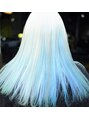 スモーキーなホワイトにインナーメッシュで水色の差し色を!気に入ったスタイルは「ブックマークする」を押して来店時にご提示下さい♪ダブルカラー/ケアブリーチ/ハイトーンカラー/ハイライト/インナーカラー/カラーバター/透明感 外国人風/千葉/千葉中央.