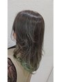 毛先をブリーチして髪全体にグリーンを入れた秋服にも似合う落ち着いたデザインカラーです。ナチュラルレイヤーカットで、軽く巻くだけで動きもでます。