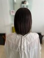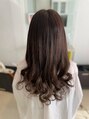リピーターのお客様です。地毛の毛先が少し重かったのでつける前に軽くすいてから取付け。超音波エクステでかなり暗めダークブラウン系の色味で100本つけてます。コテでミックス巻きにして華やかに可愛く仕上げました(*^^)v。