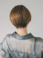 顔まわりややマッシュのハンサムショートボブです。カラーはオレンジベージュ。ブリーチ後明るめオレンジベージュをオンカラー。骨格にあわせてレイヤーや量調節をして、頭をコンパクトに見せています。生えグセもよく見て!!